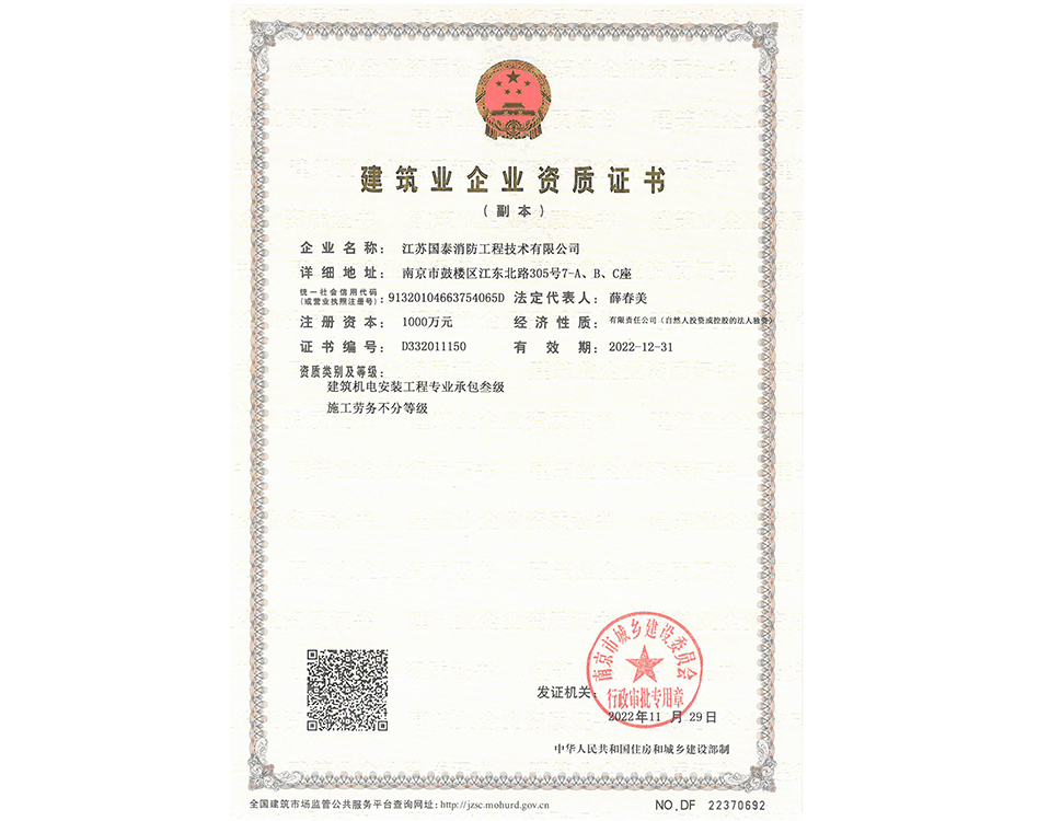 國(guó)泰應(yīng)急集團(tuán)創(chuàng)建于1999年,總部位于中國(guó)(南京)軟件谷國(guó)泰應(yīng)急大廈,是一家致力于打造以消防為核心的中國(guó)應(yīng)急安全產(chǎn)業(yè)綜合服務(wù)商,集消防、人防(掛牌上市)、安防、投資四大產(chǎn)業(yè)于一體。中國(guó)消防器材制造業(yè)10強(qiáng)企業(yè),中國(guó)消防行業(yè)十大民族企業(yè),國(guó)家人防辦定點(diǎn)生產(chǎn)企業(yè),消防產(chǎn)品國(guó)家實(shí)驗(yàn)室單位,擁有國(guó)家住建部頒發(fā)的消防設(shè)施工程設(shè)計(jì)甲級(jí)、施工一級(jí)資質(zhì),擁有應(yīng)急管理部頒發(fā)的消防設(shè)施維保、檢測(cè)、評(píng)估國(guó)家一級(jí)資質(zhì),具有國(guó)家城市市政工程、建筑工程、裝飾工程等各項(xiàng)專業(yè)承包資質(zhì)。集團(tuán)現(xiàn)有員工3000余人,擁有華東、華北、華西、華南四大產(chǎn)業(yè)園基地,及1000余家下屬分、子公司。