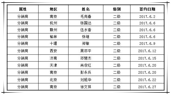 【國泰訊】6月30日,自集團(tuán)營銷中心最新數(shù)據(jù)顯示,進(jìn)入六月以來,公司渠道開發(fā)又出新成績,新增簽約合作伙伴11家。他們分別來自南京、杭州、贛州、榆林、十堰、西安、濟(jì)南、天津、北京等,至此國泰集團(tuán)渠道的開拓工作又登上了一個新的臺階!