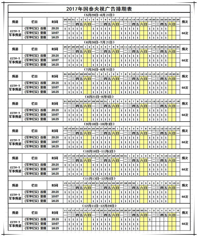 【附:國(guó)泰央視7套廣告排期2017年下半年播出表】