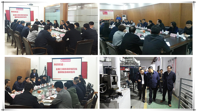 【國(guó)泰訊】2017年4月10日下午3時(shí),全國(guó)工商聯(lián)調(diào)研組至國(guó)泰集團(tuán)進(jìn)行系統(tǒng)考察。調(diào)研組由中央統(tǒng)戰(zhàn)部副部長(zhǎng)、全國(guó)工商聯(lián)黨組書記、常務(wù)副主席全哲洙帶隊(duì),周海江(全國(guó)工商聯(lián)副主席、紅豆集團(tuán)黨委書記、董事局主席)、譚林(全國(guó)工商聯(lián)經(jīng)濟(jì)部部長(zhǎng))、朱音(國(guó)家稅務(wù)總局收入規(guī)劃核算司副司長(zhǎng))等領(lǐng)導(dǎo)一行組成,江蘇省及南京市工商聯(lián)各級(jí)領(lǐng)導(dǎo)亦一同到訪集團(tuán)進(jìn)行調(diào)研,集團(tuán)董事長(zhǎng)王根彬攜公司高管進(jìn)行了全程陪同。首先,全國(guó)工商聯(lián)全哲洙書記帶領(lǐng)調(diào)研組深入集團(tuán)消防、人防廠區(qū)進(jìn)行了實(shí)地參觀考察,現(xiàn)場(chǎng)檢查了國(guó)泰各生產(chǎn)車間的工作,并詳細(xì)詢問了廠區(qū)的人員管理、生產(chǎn)安全、產(chǎn)品質(zhì)量等情況。隨后,全哲洙書記攜全體調(diào)研組至消防事業(yè)部4樓會(huì)議中心,與集團(tuán)董事長(zhǎng)王根彬就如何降低企業(yè)綜合成本進(jìn)行了深入溝通與重點(diǎn)交流。