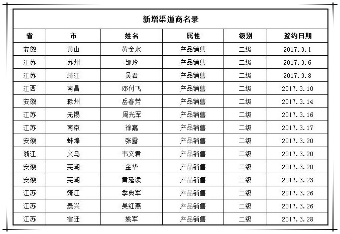 【國(guó)泰訊】日前,據(jù)集團(tuán)營(yíng)銷(xiāo)發(fā)展中心消息,自國(guó)泰重新調(diào)整渠道部署工作以來(lái),渠道合作隊(duì)伍拓展迅速,3月份又新增渠道合作商14家。他們分別來(lái)自黃山、蘇州、靖江、南昌、滁州、無(wú)錫、南京、蚌埠、義烏、蕪湖、泰興、宿遷等地區(qū)。至此國(guó)泰集團(tuán)渠道的開(kāi)拓工作又登上了一個(gè)新的臺(tái)階!