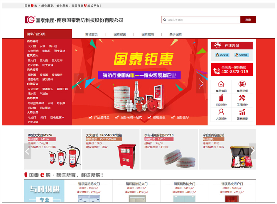 近日,國(guó)泰集團(tuán)為配合“互聯(lián)網(wǎng)+”行動(dòng)計(jì)劃,進(jìn)一步促進(jìn)企業(yè)轉(zhuǎn)型升級(jí),決定全面啟動(dòng)建設(shè)企業(yè)電子商務(wù)交易平臺(tái),充分發(fā)揮電子商務(wù)的優(yōu)化和集聚優(yōu)勢(shì),實(shí)現(xiàn)消防產(chǎn)品一站式服務(wù),以滿足廣大客戶網(wǎng)上洽談交易的需求。