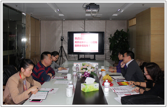 【圖為南京證券尹總一行與集團領導就掛牌前做市事宜進行深入交流】