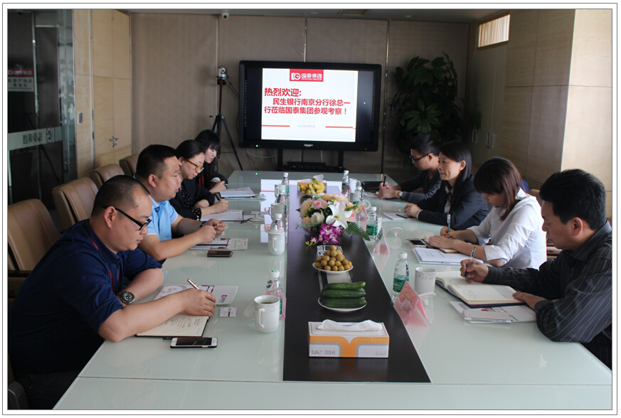 【國泰訊】5月5日下午,民生銀行南京分行徐總一行到訪集團(tuán),此行旨在進(jìn)一步推動和加深雙方在多個(gè)方面的業(yè)務(wù)合作。集團(tuán)董事長王根彬、集團(tuán)財(cái)務(wù)總監(jiān)劉靖等領(lǐng)導(dǎo)對徐總一行進(jìn)行了熱情的接待,雙方在集團(tuán)會議中心進(jìn)行了深入溝通與洽談。
