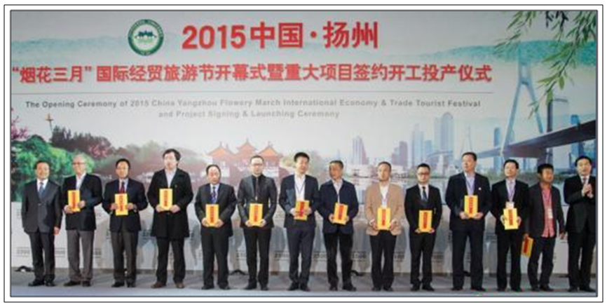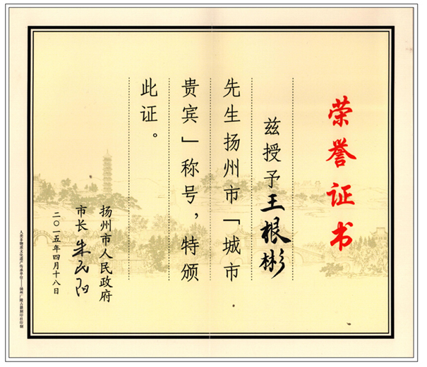 據(jù)悉,揚州市“城市貴賓”稱號是為褒獎在市經(jīng)濟建設、社會發(fā)展、生態(tài)文明建設及友好交流合作中作出突出貢獻的國內外友好人士而設的特殊榮譽稱號。此次開幕上,被授予該稱號的企業(yè)家共13名,它們分別是:國泰消防科技股份有限公司董事長王根彬先生;香港富原投資(集團)董事局主席衛(wèi)平先生;新東方教育科技集團副總裁、北京新東方揚州外國語學校校長王修文先生;啟迪控股股份有限公司總裁王濟武先生;荷蘭NITA設計集團、艾綠投資集團董事、總裁方盛先生;江山新能源(香港)有限公司董事會主席、執(zhí)行董事劉文平先生;南京鐵路樞紐工程建設指揮部指揮長、連淮揚鎮(zhèn)鐵路工程建設指揮部指揮長吳建剛先生;美國海藍社區(qū)學院校長杰克·伯明翰先生;中船第九設計研究院工程有限公司董事長周輝先生;上海方廣食品有限公司總經(jīng)理、揚州方廣食品有限公司董事長鄭勇鋒先生;西安航天泵業(yè)有限公司總經(jīng)理助理兼制造部總經(jīng)理、江蘇航天水力設備有限公司總經(jīng)理崔佃德先生;北京金杜律師事務所資深合伙人靳慶軍先生;揚州萬噸食品冷鏈有限公司總經(jīng)理、執(zhí)行董事譚壘先生。
